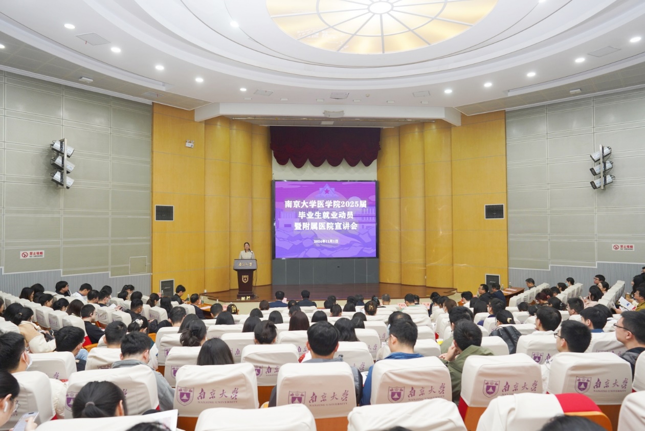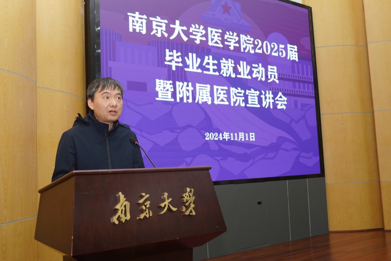 111日下午,2025届毕业生就业动员会暨附属医院专场宣讲会在鼓楼校区逸夫馆报告厅举行,唐健、沈苏南以及各附属医院代表出席会议。会议由王阿妮主持。