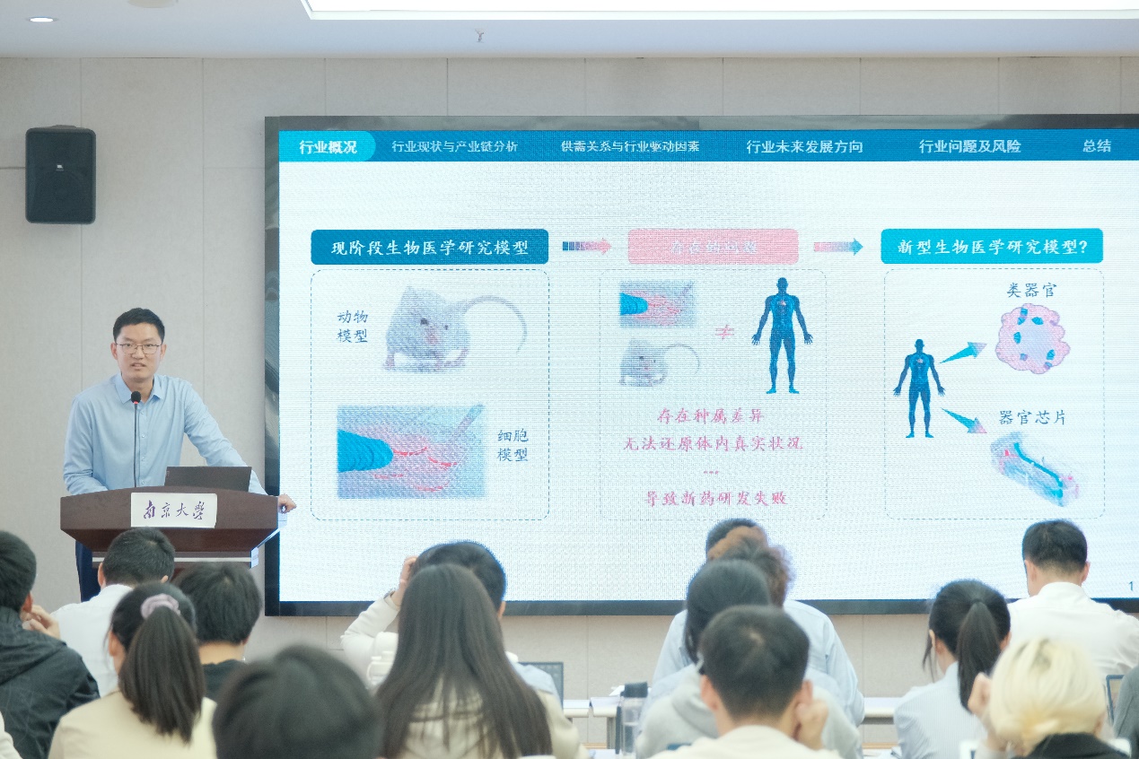 “类器官与器官芯片行研队”由六合彩论坛 2022级博士生张礼堃担任队长,团队成员有六合彩论坛 2022级硕士王园梦及商六合彩论坛 2022级本科生李傲雪。近年来,为了克服传统生物医学研究模型的不足,越来越多的科学家开始构建新型类器官和器官芯片模型,以期在体外复刻人体器官或组织。在这一大趋势的推动下,众多类器官及器官芯片企业应运而生,行业热度逐年增加。然而,这一行业尚处于早期阶段,缺乏统一的行业技术标准体系,在还原度等方面也未能完全满足需求。基于这一行业的广阔发展前景,该团队通过“行走课堂”参访了恒瑞医药、阿斯利康和欧莱雅等企业,在此过程中,团队成员深刻感受到类器官与器官芯片技术的巨大潜力,也让他们深切领悟到科技进步为人类健康带来的新希望和无限可能。张礼堃作为队长带领团队回顾总结了该行业的历史与现状、分析了其存在的问题和风险,并对该行业未来的发展方向进行了展望。