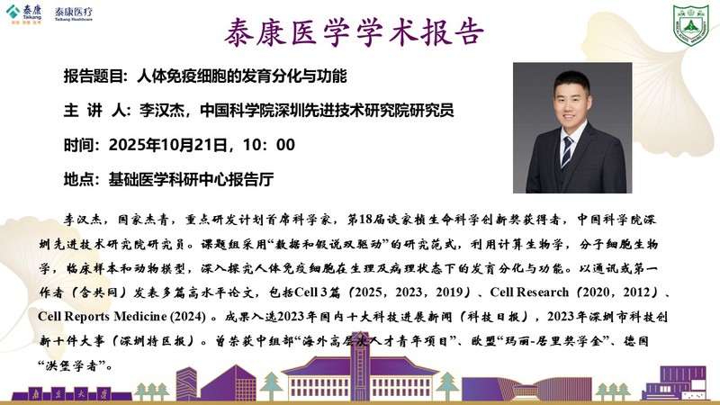 2025.10.21泰康医学学术报告-李汉杰研究员:人体免疫细胞的发育分化与功能