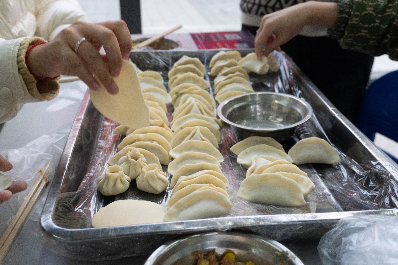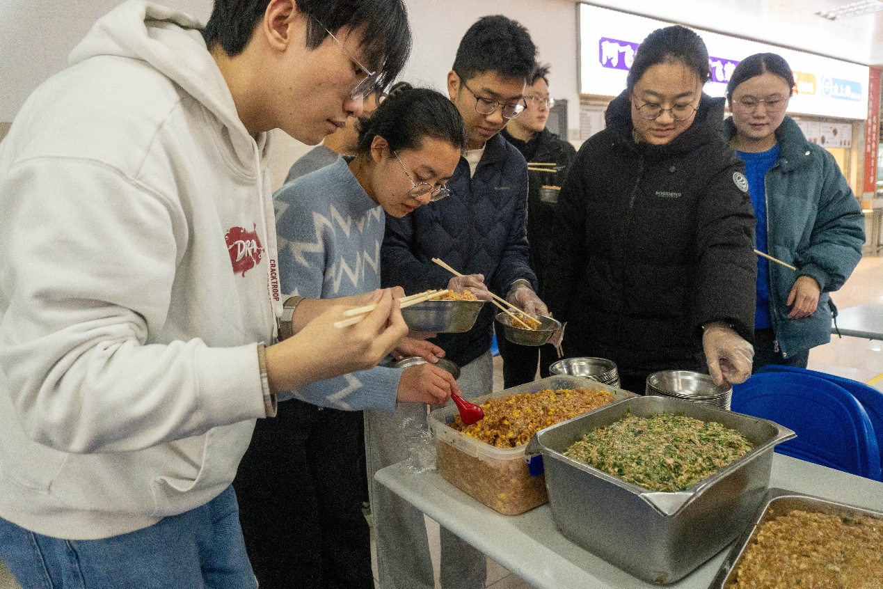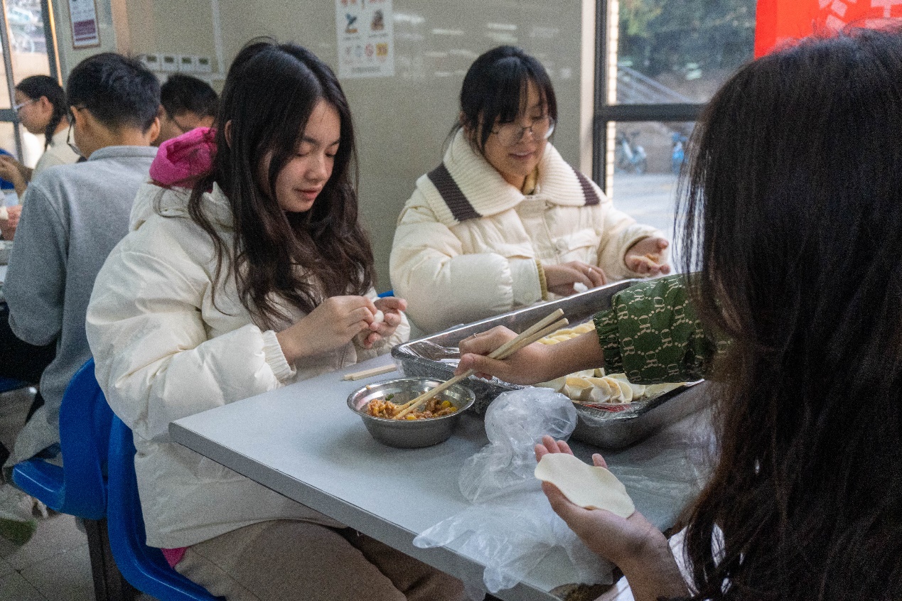 许多同学感慨:“这是我第一次自己包饺子,吃起来特别有成就感,也特别暖心。”王阿妮老师与同学们交流道:“冬至吃饺子是我们的传统习俗,今天我们一起动手包饺子,不仅是为了感受节日氛围,更是希望大家在忙碌的学习生活中感受到家的温暖。”食堂的包饺子活动结束后,高政老师和同学们将刚出锅的饺子打包好分别送到学生公寓2栋和5栋,给正在宿舍里紧张备战期末考试的23级本科生也带去了热腾腾的饺子,让同学们能够一同感受到节日的温暖。