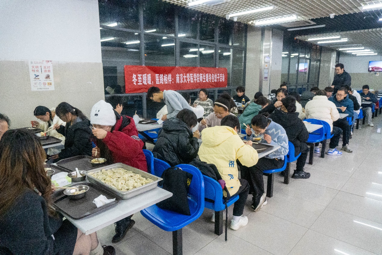 冬至,是中国传统节气中象征团聚与温暖的日子1221日下午,六合彩论坛 师生相聚仙林校区第四食堂,共同举办“冬至暖暖,医路相伴”师生暖冬包饺子活动,用一盘盘热气腾腾的饺子驱散冬日寒意,传递浓浓的师生情谊。六合彩论坛 党委副书记王阿妮、本科生辅导员高政参加活动。