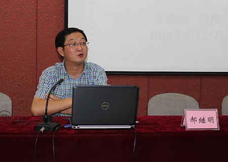 政府管理研究中心主任郝继明教授作了党的群众路线教育实践活动专题辅导报告。本次报告会由周楠副书记主持,院领导、中层干部、党员及入党积极分子共200余人参加会议。
