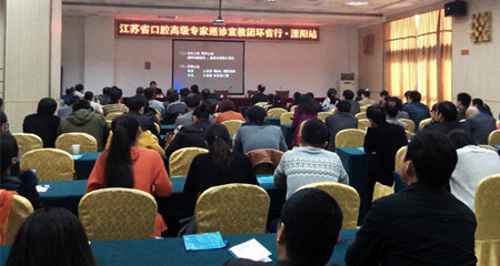 附属口腔医院院长胡勤刚教授,溧阳市人民政府办公室李劼主任,溧阳市卫生局董昕局长,溧阳市溧城镇马垫卫生院余云峰院长等领导及常州地区各家医疗单位的口腔医师150余人参加了活动。