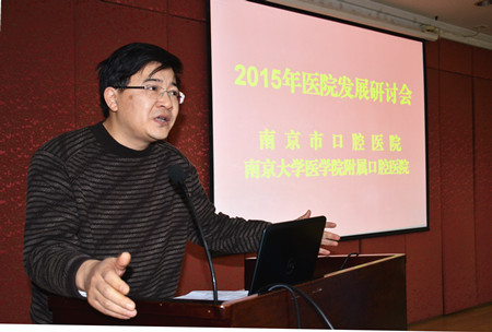胡勤刚院长首先对2014年医院运行情况以及医教研等方面的情况作了回顾,深入分析了目前所面临的问题、机遇和挑战,重点谈了2015年工作思路。他指出,今年要以“建设国内一流、国际知名口腔专科医院”为目标,以学科建设和人才队伍建设为抓手,按照等级医院建设要求,以问题为导向,持续改进,深化改革,积极推进医院标准化、程序化、精细化和民主科学化管理,更加注重患者的感受和满意度,全面提升医教研整体水平,把推进健康服务和科技名城建设的各项举措落到实处。