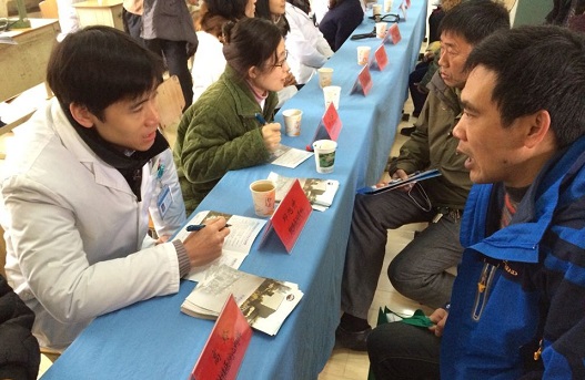心内科副主任医师高玲、骨科副主任医师邱旭升、老年医学科副主任医师陈晓琳一早就来到了活动地点,为当地群众答疑解惑,宣讲健康知识。