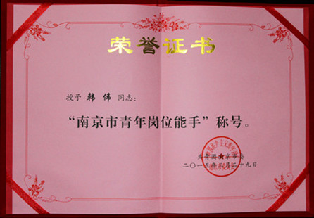 口腔颌面外科韩伟博士被共青团南京市委员会授予“南京市青年岗位能手”荣誉称号。