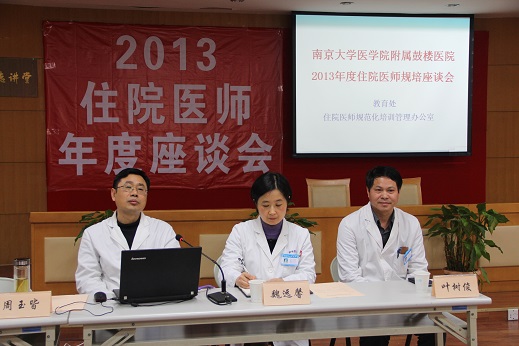 2014年1月10日下午3点在1号楼2201会议室举行了2013年度住院医师年度座谈会,胡娅莉副院长、医务处叶树俊处长、人事处魏远馨副处长、在培住院医师、全科医师以及各科住院医师辅导员近250人应邀出席。