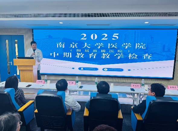 在附属鼓楼医院,副院长周敏对检查组的到来表示热烈欢迎。教育处处长赵晓智围绕立德树人根本任务,系统汇报了附属鼓楼医院在课程改革、师资建设、质量监控等方面的举措与成效。医院近年来着力推动人工智能与医学教育深度融合,构建了极具特色的智慧课程体系,同时实施师资分层培养计划,促进教师专业发展,并依托信息化平台完善教学全过程管理与反馈机制,持续提升教学管理质量。