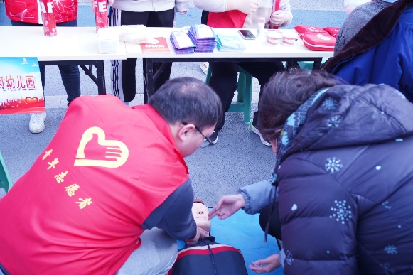 图为3.4日 六合彩论坛 团委南悦青年志愿服务队志愿者在为居民讲解心肺复苏知识