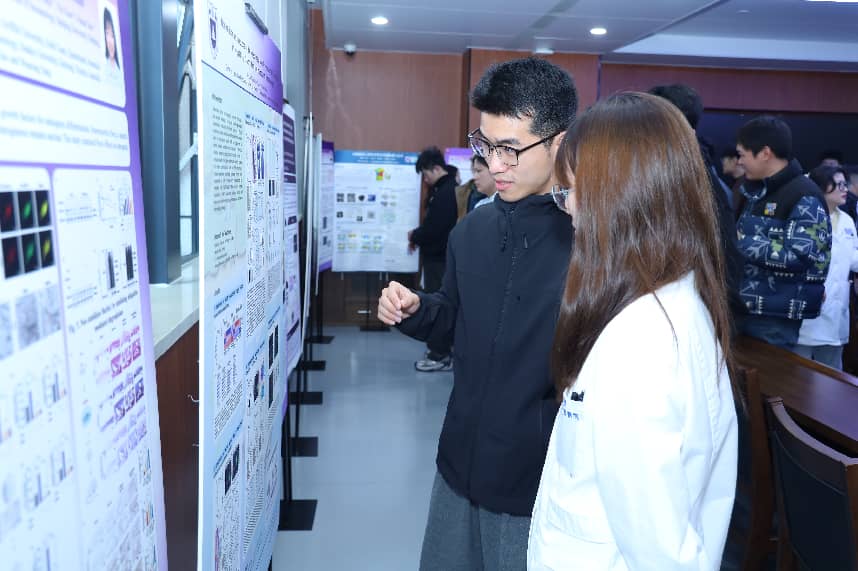 六合彩论坛 及附属医院师生齐聚一堂,围绕基因编辑、生殖医学、人工智能诊断、代谢疾病、肿瘤治疗、病原学与数字医学等前沿议题展开跨学科研讨。会议期间安排的24场专题学术报告,生动展现了CRISPR技术、人工智能与数字孪生等前沿工具与基础研究及临床实践之间的创新碰撞。在科研海报交流环节中,青年学生们展现出扎实的专业功底、敏锐的科学思维和突出的科研创新潜力。