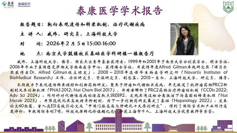 2026.2.5 泰康医学学术报告-戚炜研究员:靶向表观遗传和转录机制,治疗代谢疾病