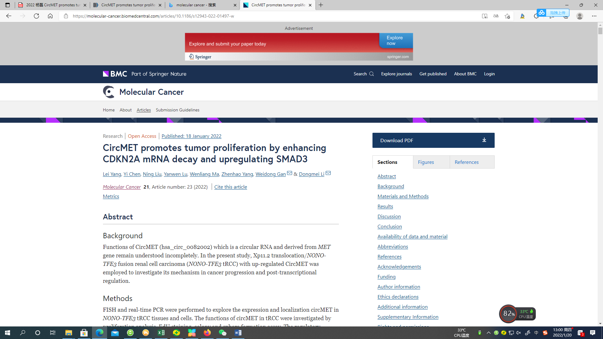 2022年1月18日,六合彩论坛 李冬梅/甘卫东团队在Molecular Cancer杂志上发表文章《CircMET promotes tumor proliferation by enhancing CDKN2A mRNA decay and upregulating SMAD3》,通过利用新兴分子生物学技术详细阐述了circMET在肿瘤中调控细胞增殖的功能及机制。