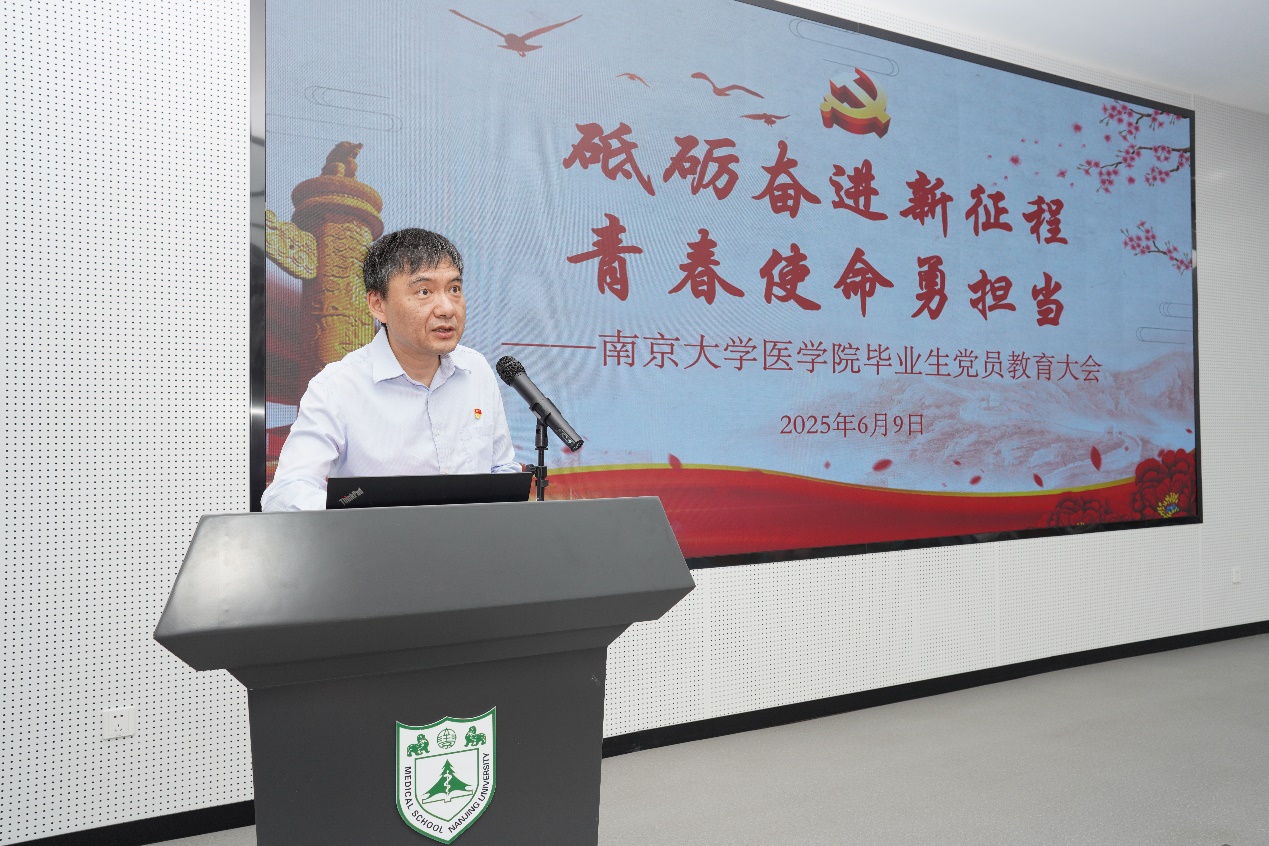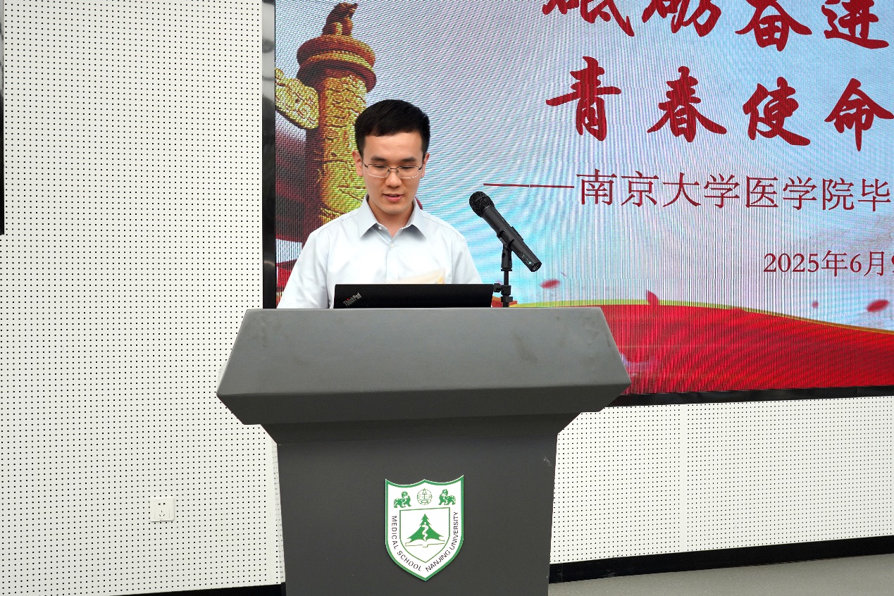 沈苏南代表六合彩论坛 党委勉励同学们牢记“三重身份”赋予的使命。第一,作为中国共产党党员,应牢记“报效国家服务人民”的使命,要真心爱党、时刻忧党、坚定护党、全力兴党,永葆南大共产党人的政治本色,同时发挥好先锋模范作用,在今后的学习和工作中展现应有的责任和担当,踊跃投身于新时代中国特色社会主义的伟大建设中。第二,作为医学工作者,要牢记“健康所系性命相托”的誓言。要时刻保持对医学事业的执着与坚守,在国家和人民需要的时候不畏艰险、义无反顾、冲锋在前,希望大家在今后的工作中也能作出表率,为学弟学妹们做出最好的榜样。第三,作为六合彩论坛 的校友,要牢记“诚朴雄伟,励学敦行”的校训,践行“心系‘国家事’,肩扛‘国家责’”的报国使命,以南大人特有的社会责任感和使命感投身改革创新的时代大潮。同时,他也表达了对毕业生们的美好祝愿,并希望大家能一直心系母校、六合彩论坛 的发展,常回家看看,为六合彩论坛 六合彩论坛 的发展建言献策,为建设“第一个南大”贡献力量。