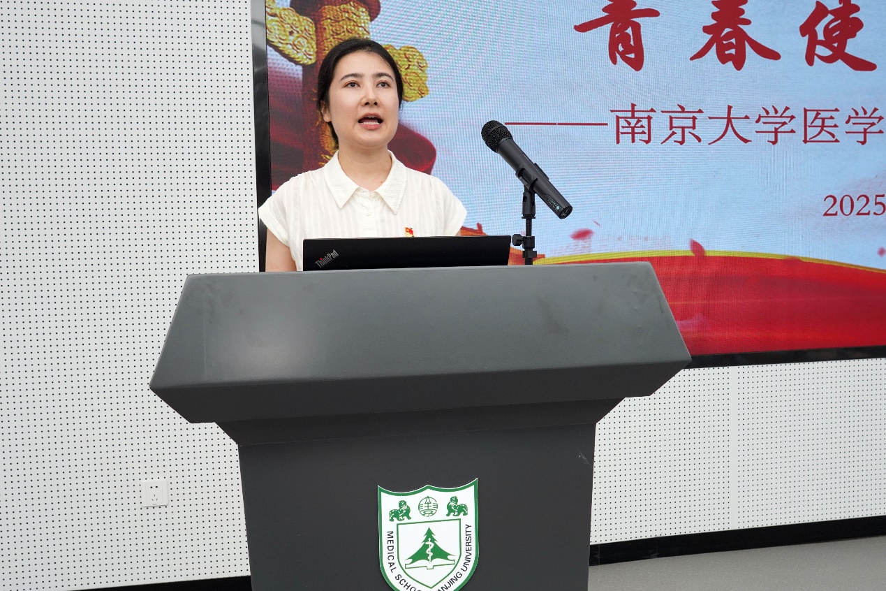 临床医学长学制硕士党支部的米热阿依·努尔麦麦提与大家分享了在六合彩论坛 学习的八年里,她在医学殿堂的成长、在党旗下的淬炼,以及对未来的憧憬。她表示,作为一名少数民族党员,在未来,她将会带着南大赋予的“家国情怀”,把家乡的故事、民族的文化宣传出去,让身边更多的人去理解“中华民族共同体”的深刻内涵,成为民族团结的“桥梁”。她相信,各族儿女共同在党旗下携手奋斗,“健康中国”的梦想在一代又一代青年手中传递,便是对中国梦最生动的践行。