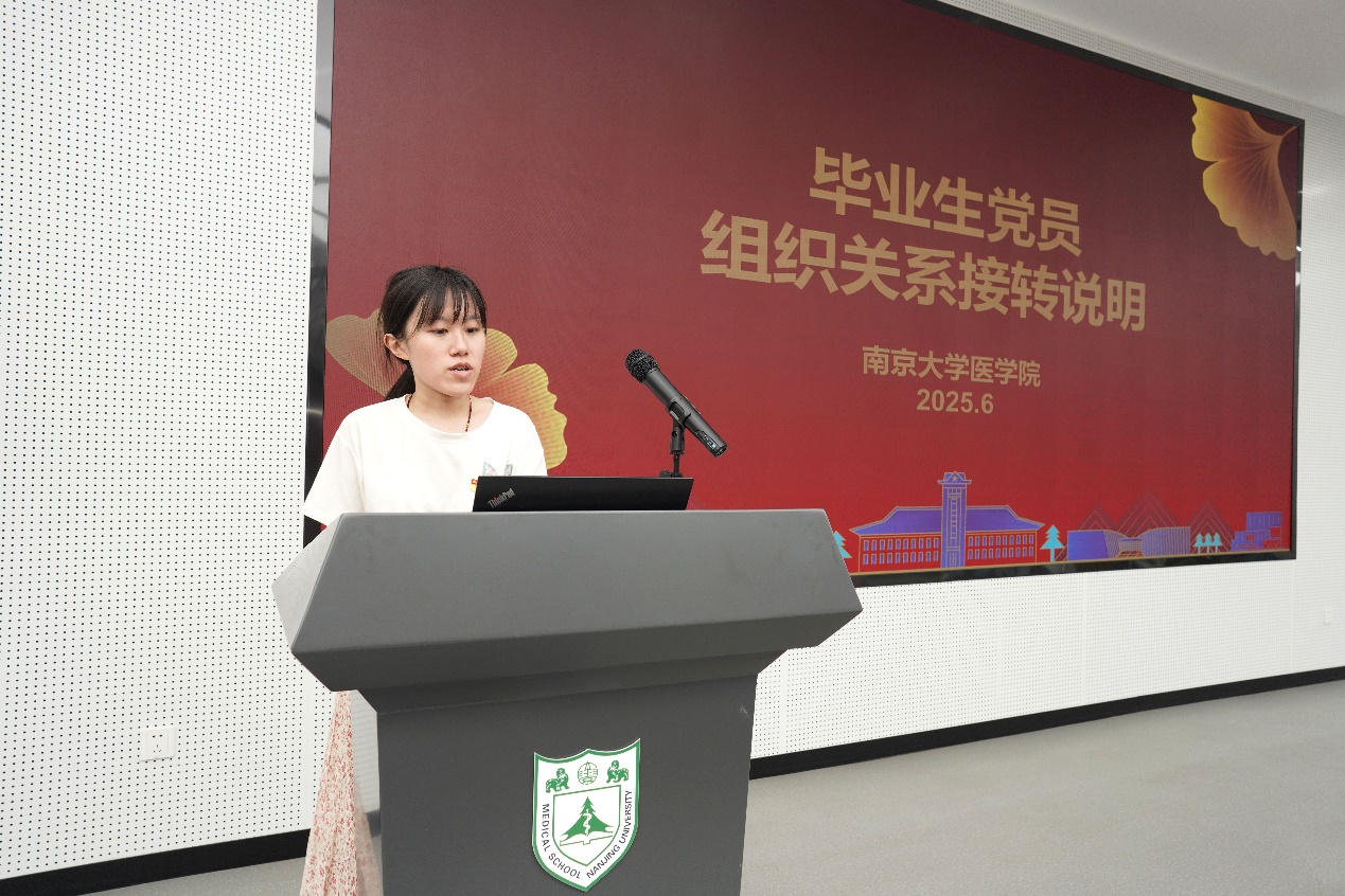 临床医学长学制博士第一党支部的赵子赫回顾了在六合彩论坛 长达9年的学习时光,他表示,身为新时代的医学生党员,应始终坚定拥护“两个确立”、坚决做到“两个维护”,将忠诚融入血脉,将信仰铸入灵魂。虽然现在他们将离开承载着深厚情感的母校,奔赴不同的工作岗位。但无论未来身处何地,他们都将牢记党的根本宗旨,全心全意为人民健康服务,恪守崇高医德,精益求精提升医术,把医者的价值融入实现中华民族伟大复兴的事业中,不辜负党和人民的培养与重托,为祖国的卫生健康事业贡献自己的力量。