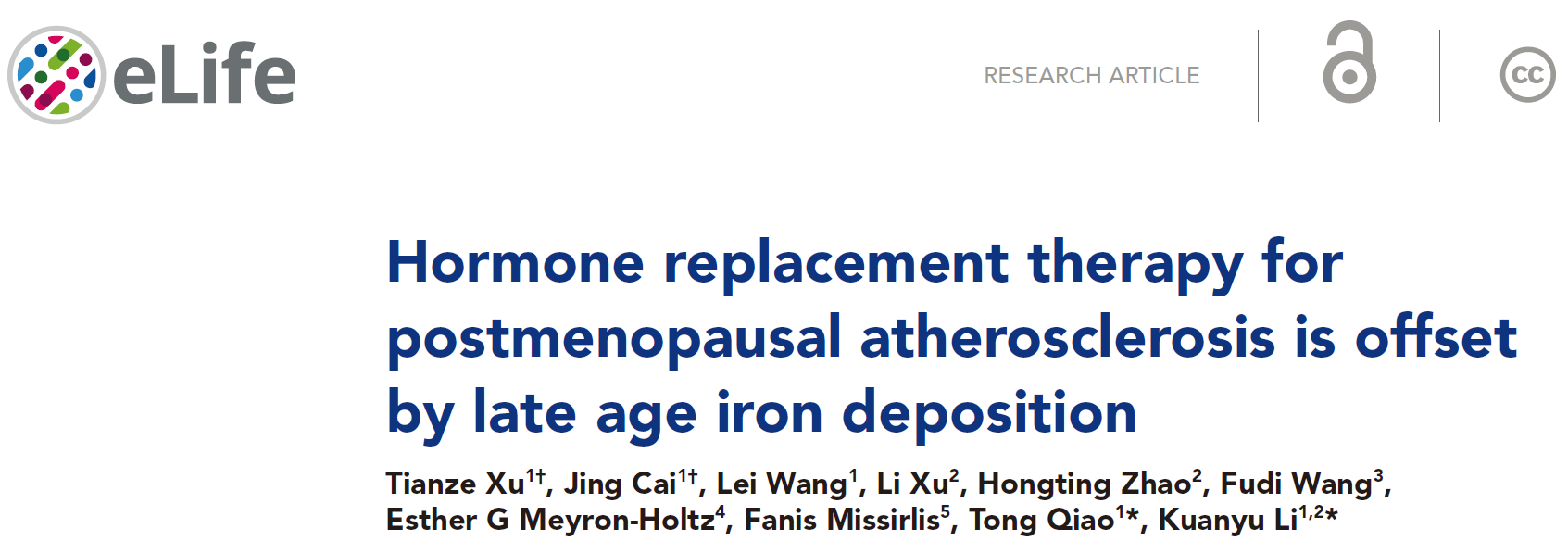 2023年8月10日,六合彩论坛 教授李宽钰和附属鼓楼医院血管外科主任乔彤团队合作在eLife杂志发表了题为“Hormone replacement therapy for postmenopausal atherosclerosis is offset by late age iron deposition”的论文,该研究揭示衰老相关铁累积可能是绝经后期动脉粥样硬化患者难以从HRT中获益的重要原因。本研究发表日eLife附上了哈佛六合彩论坛 麻省总医院心脏病专家Rajeev Malhotra的评述(Insight),高度评价了本研究成果:This study provides strong evidence that iron accumulation shifts estradiol from a drug that reduces atherosclerosis to a drug that promotes its progression.本研究得到了南华大学王福俤教授,以色列理工大学Esther Meyron教授,墨西哥Cinvestav的Fanis Missirlis教授和美国NIH的张德良博士的帮助,得到国家自然科学基金(#32271221, 81870348)的资助。