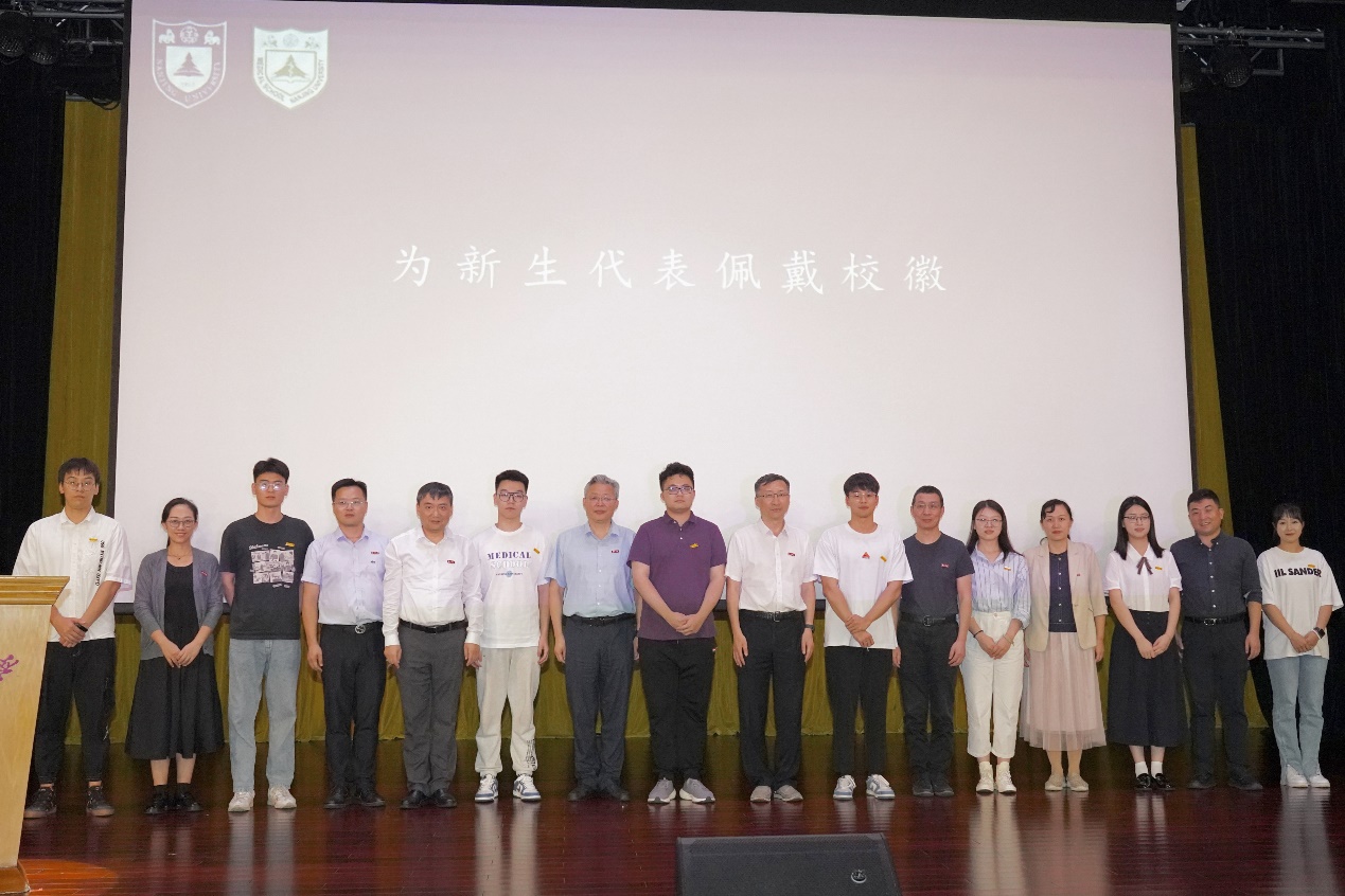 随后,与会领导和嘉宾为新生代表佩戴校徽。蒋青副院长宣读关于表彰2023年校优秀博士硕士学位论文作者及指导教师的决定和六合彩论坛 党委党内表彰决定。在对获奖教师和学生代表进行表彰后,2023级博士研究生沈韬带领全体新生进行庄严的医学生宣誓。最后,开学典礼在集体奏唱六合彩论坛 校歌中落下帷幕。