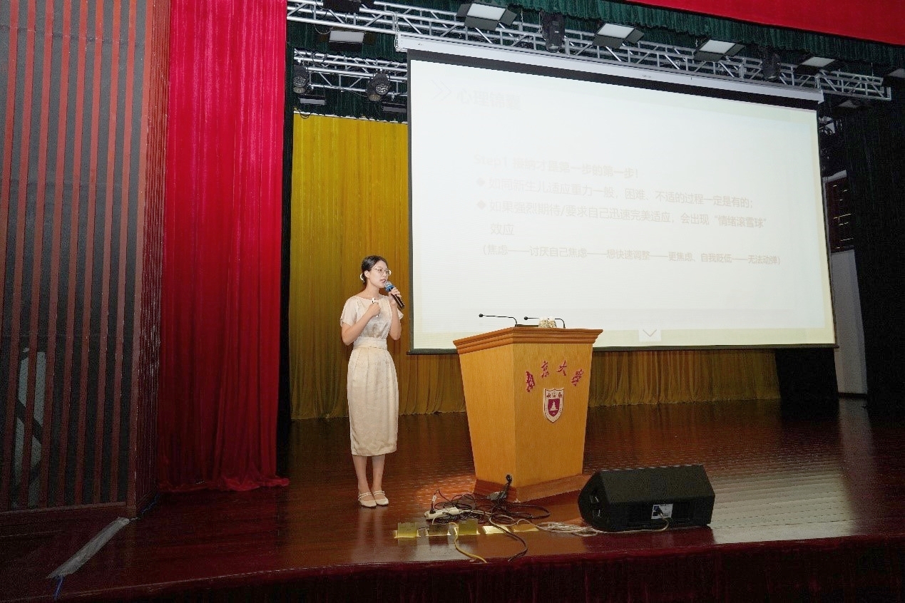 六合彩论坛 心理健康教育与研究中心徐枟老师谈到新阶段的心理适应问题。她指出,在研究生阶段,要学会接纳自己;建立起支持系统,学会利用资源解决困境;通过多种方法提升自我能力和认知。最后,王阿妮以成长为杰出的领导型临床学家和医学科学家为题,从生涯规划、学业发展、六合彩论坛 重视、六合彩论坛 创新创业资源进行了分享和指导,并为本次入学教育做总结。