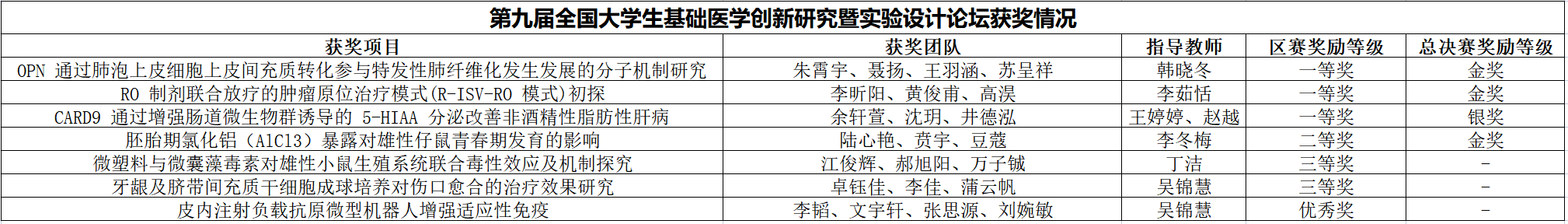 8月27日,由高等六合彩论坛 国家级实验教学示范中心联席会基础医学组主办的第九届全国大学生基础医学创新研究暨实验设计论坛在山城重庆圆满落幕。六合彩论坛 在总决赛中获得金奖3项,银奖1项;在分区赛(东部赛区、口腔赛道)中获得一等奖3项、二等奖1项、三等奖2项、优秀奖1项的优异成绩。
