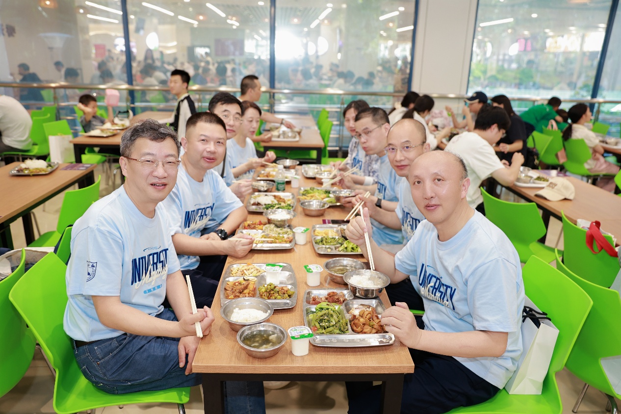 校友们抵达后,首先在学生食堂共进午餐。餐桌上,大家仿佛穿越时光,热烈地谈论起当年种种趣事,欢声笑语中流淌着依然醇厚的同窗情谊。