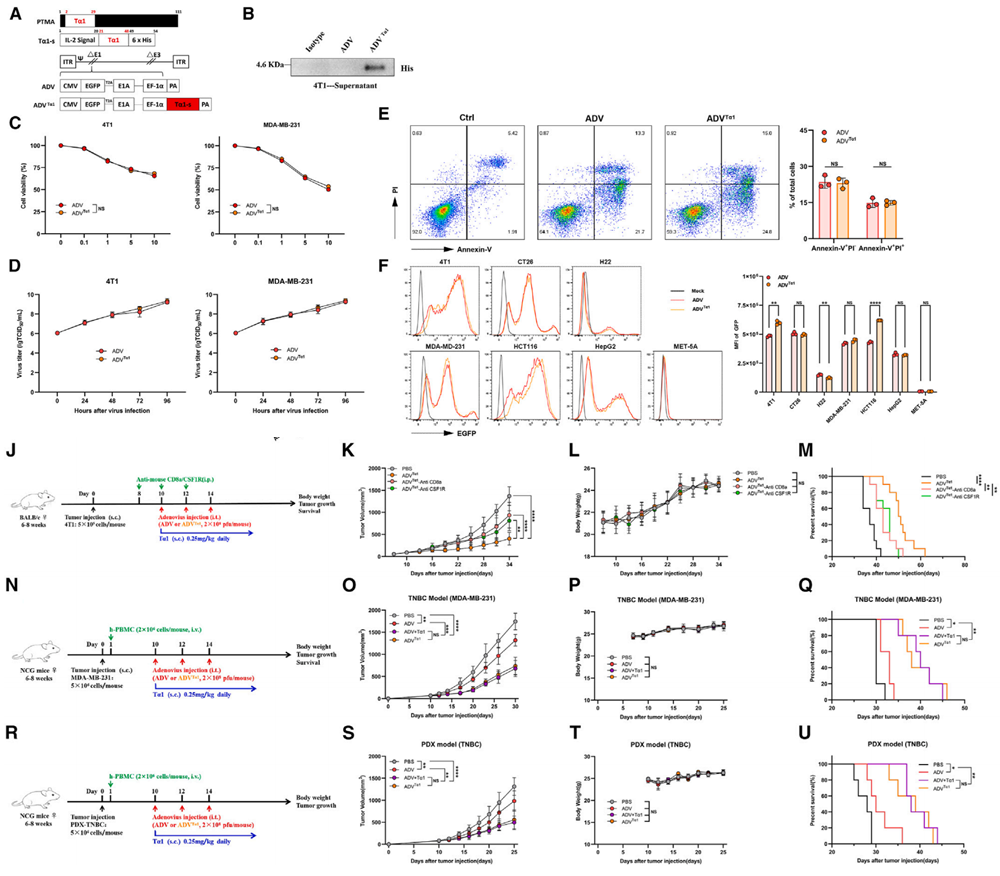 图3. ADVTα1构建表征,并在体内发挥卓越的抗肿瘤活性