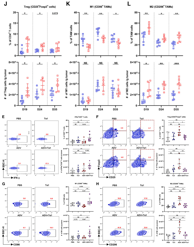 图1.Tα1逆转ADV治疗期间巨噬细胞的M2表型,降低TME中的Treg数量