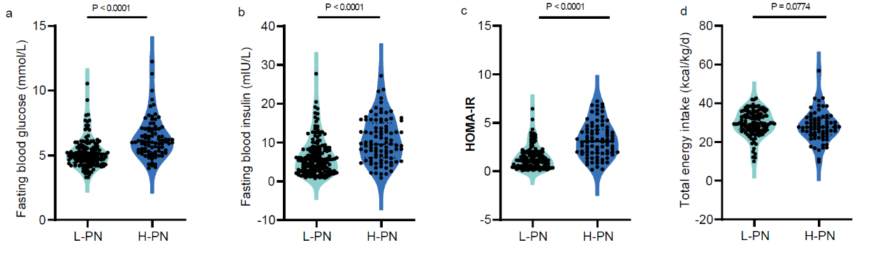 Xinying Wang’s group performed a cohort study which included 256 patients with intestinal failure and found that 50% of patients who received more than 80% of the total energy required through parenteral nutrition (H-PN) suffered the glucose metabolism disorders (HOMA-IR > 2.69), and the HOMA-IR was strongly associated with poor clinical outcomes (ICU admission, infection, organ damage). Subsequently, insulin resistance, reduced liver glycogen deposition, abnormal insulin signaling and glycogen synthesis-related pathways have also been found in the mouse model of parenteral nutrition (Fig.1).