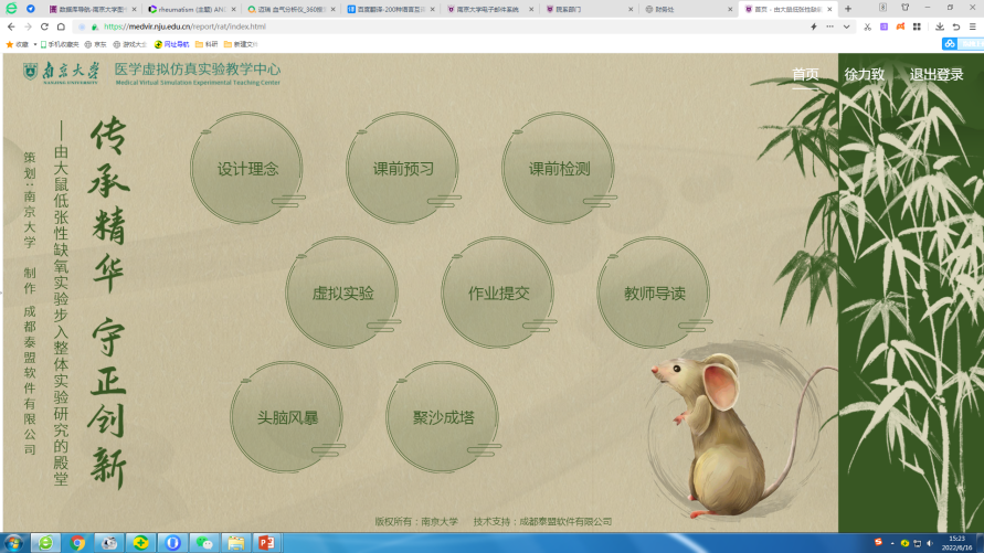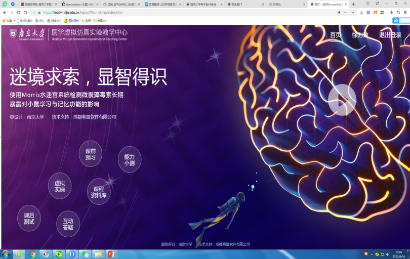 六合彩论坛 建设了medvir.lhcltforum.com基础医学虚拟仿真实验平台网站。自主设计多个教学虚拟仿真实验项目以满足目前人才培养需求,鼓励教师和学生在教学活动中做时代的“破局者”,已部署《传承精华,守正创新——由大鼠低张性缺氧实验步入整体实验研究的殿堂》《世界上没有完全相同的两片树叶——由家兔急性坏死性肾病特案学习临床诊疗的预案设计》《迷境求索,显智得识——使用水迷宫系统检测长期微囊藻毒素-LR暴露对小鼠学习认知功能的影响》《知音辨位,显智得识——使用条件恐惧系统检测小鼠学习与记忆》等九个虚拟仿真实验项目。