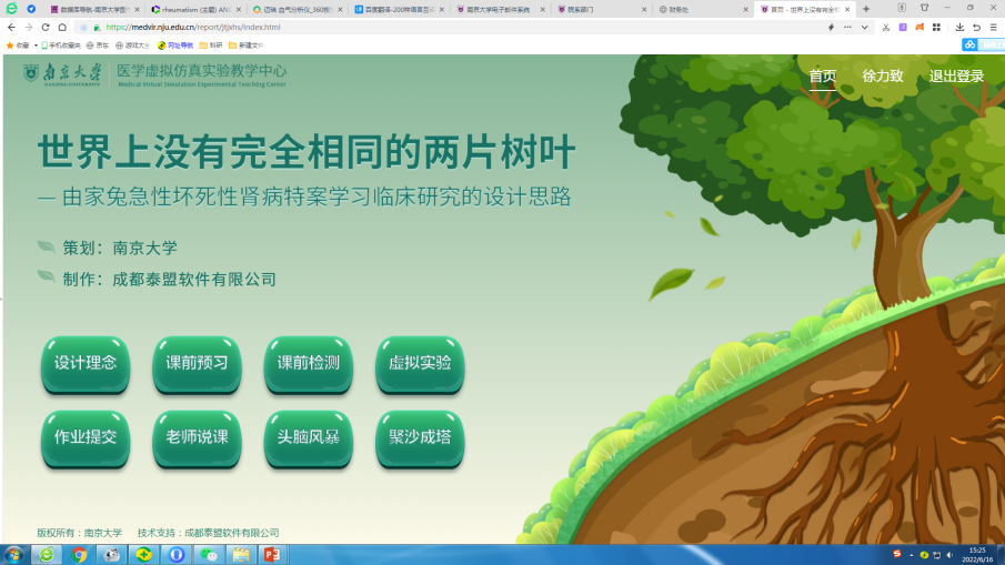 2022年度“高等六合彩论坛 医药类虚拟仿真实验教学项目作品展示”——世界上没有完全相同的两片树叶——由家兔急性坏死性肾病特案学习临床诊疗的预案设计,二等奖。
